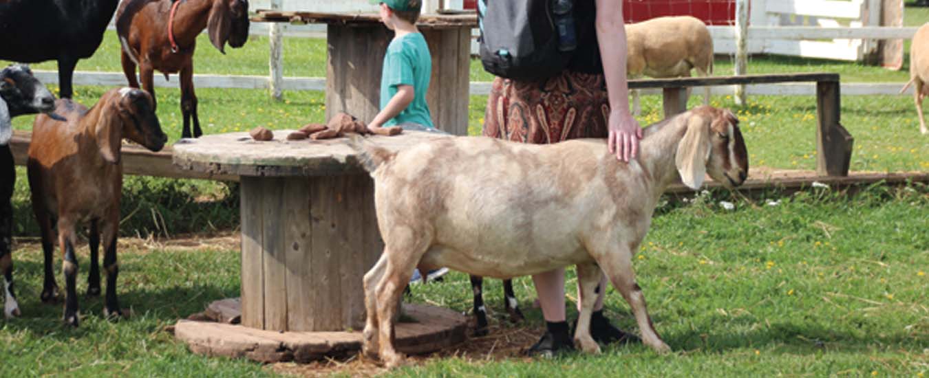 Outside, we watch some of today’s 300 visitors petting animals in the barnyard. A sign on the fence reads “Dairy Girls” and lists the goats by name—Mable, Elderberry, Loretta Lynn. “They love you unconditionally,” Sanderson says. “They’ve got to be fed, so they rely on me.” She points to a specific goat. “That one follows me everywhere and lies down beside me. They trust me.”