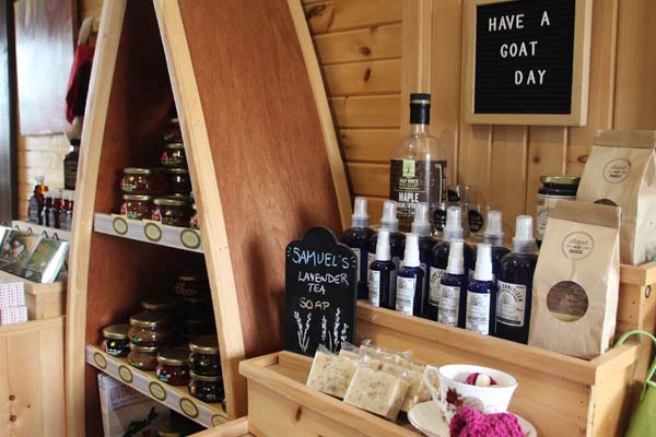 Shelves and shelves of goat milk soap bars are stacked against the walls. Essential oils and other ingredients like the lavender and roses grown here on the farm give each a distinctive scent. A single litre of goat milk makes 40 bars. Each is cured for a month, then hand wrapped for sale in Flory’s Shoppe here on the farm and elsewhere on the island.