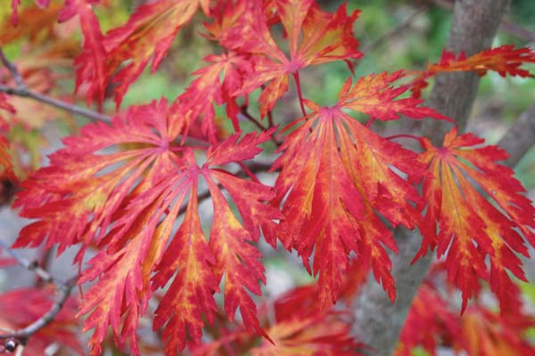Of course, we are now heading into the season when hardwood trees turn incandescent shades of yellow, bronze, scarlet and copper. Many perennials and shrubs also change colour with the season, including those that normally have differently-hued foliage. One of the best examples of great fall colour comes from Japanese maples (Acer palmatum), which, depending on the variety, can have finely-dissected, lacy foliage as well as more obviously maple-like leaves. Many of these maples have red, burgundy, gold or variegated foliage all growing season, and then in autumn they really turn on the hues. Japanese maples are not suitable for the colder parts of the region, but many of us can and do enjoy them in our gardens. (See sidebar on page 88 for some excellent plants for fall colour.)