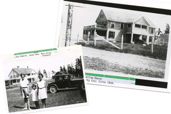 Below: The caption on this photograph reads, “1933: Kay Roberts, Janet Hunt, Mary Alice Archibald.” RIght: Big Yellow House, Flaherty era, circa 1918.