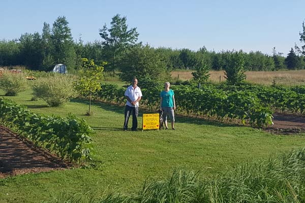 Sara Jewell Mattinson writes for Saltscapes on a regular basis from her home in Port Howe, not far from Oxford, NS. People in that area regularly stop near her house, which faces onto a main route, because she and her husband Dwayne Mattinson have a big garden of large sunflowers. Sara explains how they’ve been doing this for the past eight years. “Dwayne’s father Donn liked sunflowers, so in 2013 Dwayne planted a row of them at the edge of the gardens in the back yard.” Dwayne chimes in, “My dad used to plant tall ones around his flagpole, and when he had to stop doing that, I just started to plant them in my gardens. He’d drive in and look at them.”