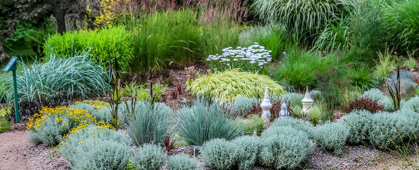 You will often hear people refer to cool or warm season perennial grasses, which may sound a little confusing. This has to do in part with when they start their active growth. Cool season grasses start growing fairly early in the spring, while temperatures are still on the cool side—they tend to want a consistent amount of moisture in the soil or they may turn brown in the heat of the summer. My favourite cool season grass is blue oat grass, Helictotrichon, which has striped, blue-green and white foliage and delicate white, oat-like inflorescences. Other genera include Calamagrostis, (feather-reed grass), sedges (Carex), blue fescue (Festuca) and moor grass (Molinia).