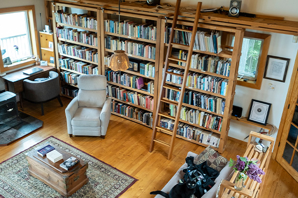 The expansive bookshelf is one of Allan’s favourite features of The Shoe.