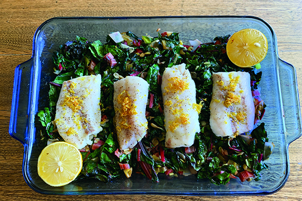 Serve fish and greens drizzled with any pan juices. Pass lemons for squeezing.