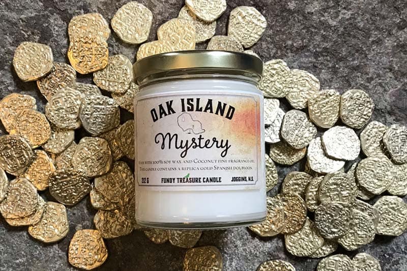 Oak Island on the South Shore of Nova Scotia has captivated the curiosity of many locals as well as visitors from around the world. Our Oak Island Mystery Candles have a replica Spanish gold doubloon embedded inside to represent the treasure that could possibly be found on the island. Burn this candle to reveal YOUR treasure! Oak Island Mystery Candles are scented with fragrance oils of Balsam Fir for the scent of the Island and Island Coconut for the coconut fibres found on the Island.